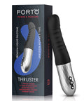 Forto Thruster. 7 thrust modes 1/2 inch thrust expansion. Sculpted shape. USB Magnetic Charge. Standby Mode. Premium Liquid Silicone. Spill and SplashProof. Length - 9.4 inches Diameter - 1.7 inches. Compatible with water based lube.
