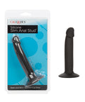 From bashful beginner to erotic expert, the CalExotics Silicone Slim Anal Stud? is sure to thrill any backdoor pleasure seekers. The virtually seamless silicone probe has a sleek slim shaft, accentuated head, and powerful suction cup base. The gently curved tip and flexible design are sure to hit just the right spot every time. The flanged base has a sturdy suction cup that can be used in a harness or mounted to a flat surface for sensational hands-free fun. The flexible probe is made from a smooth, seamless silicone. The body safe material is unscented and phthalate free to keep your most sensitive spots happy and healthy.