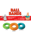 Ball Bands - 3 Edible Fruity Gummy Testicular Bands. Flavors include Apple, Orange and Blueberry.